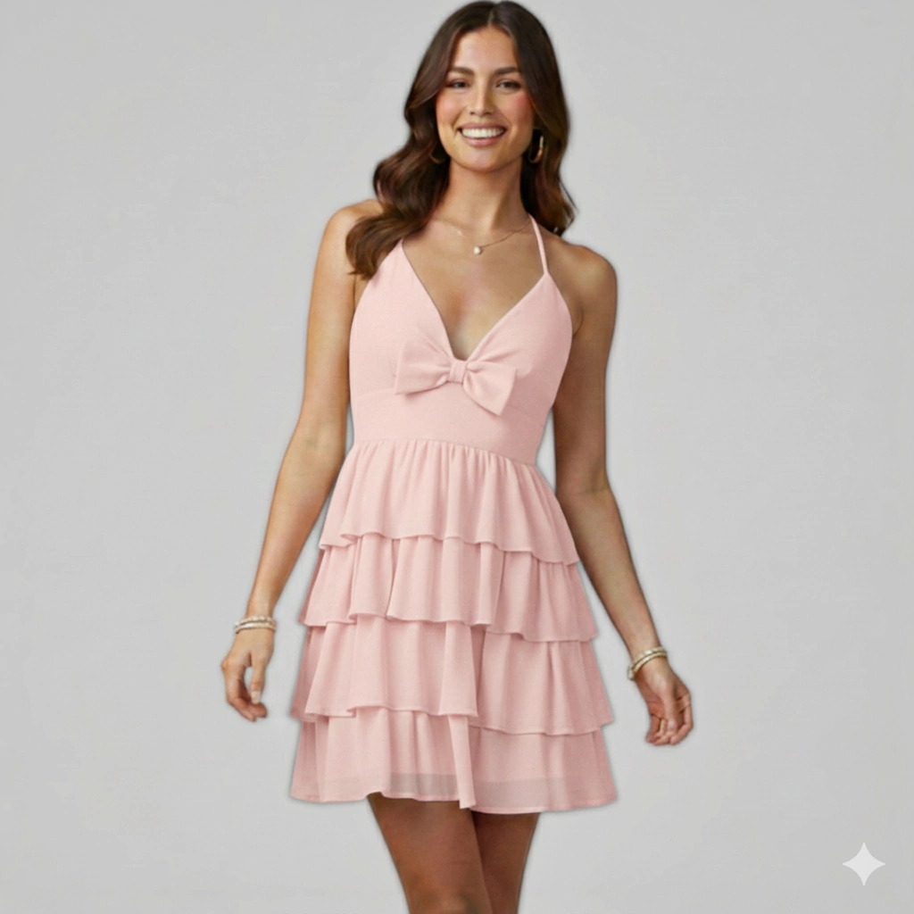 A saia em camadas cria um efeito de fluidez magnético — cada babado se move como se tivesse vida própria, trazendo leveza, feminilidade e presença.